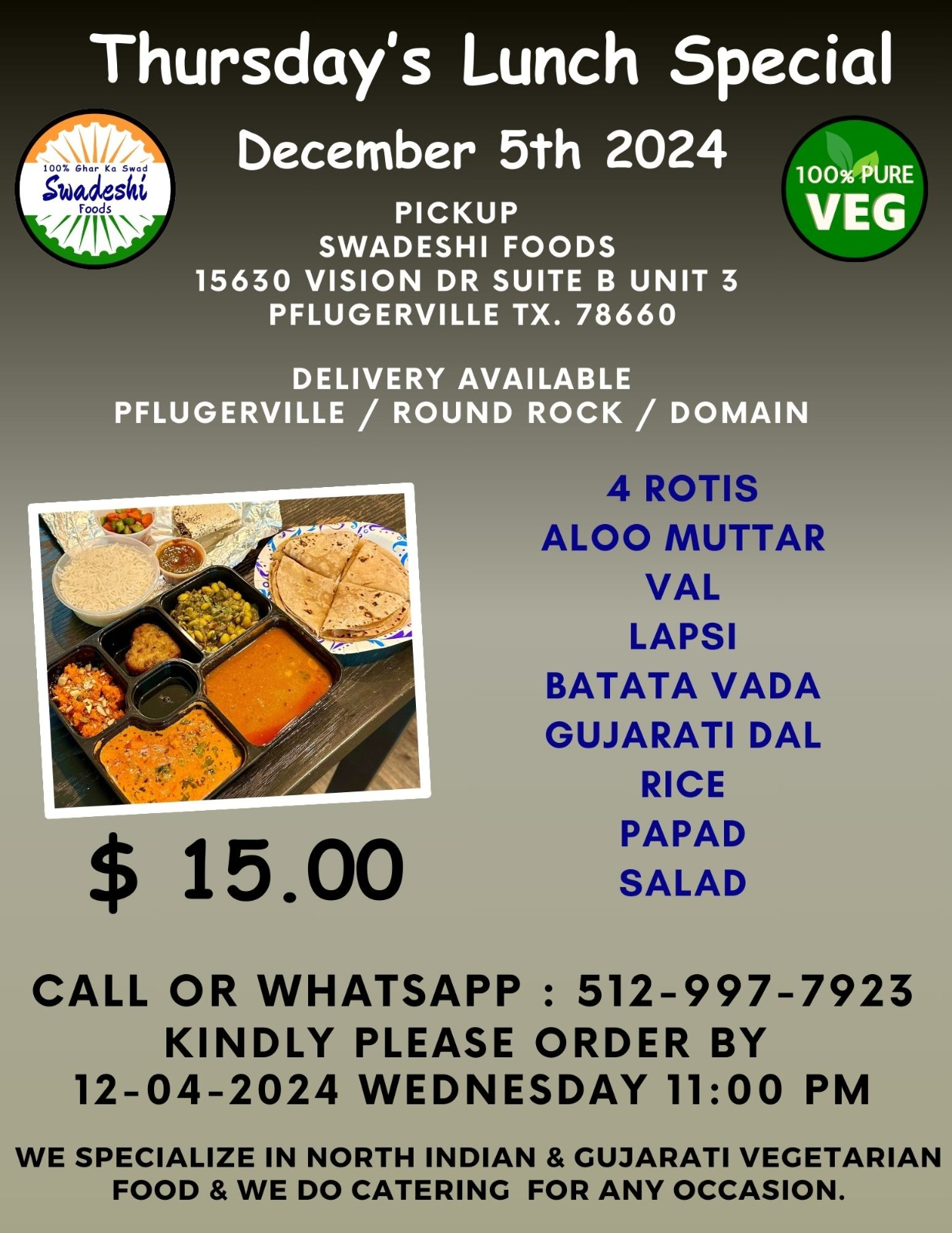 Swadeshi Foods is excited to offer catering services for your special occasions and corporate events. Our diverse menu caters to various tastes and dietary preferences, ensuring an authentic and memorable dining experience. Whether it's a wedding, birthday party, or business luncheon, let Swadeshi Foods handle the culinary details so you can enjoy your event.